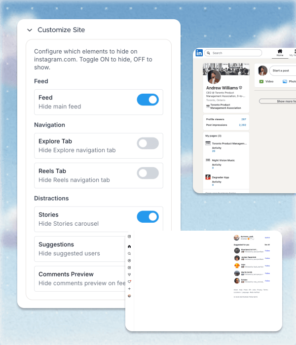 Discover flexible tools to reduce distractions, reclaim your focus, and browse with intention—on your terms.