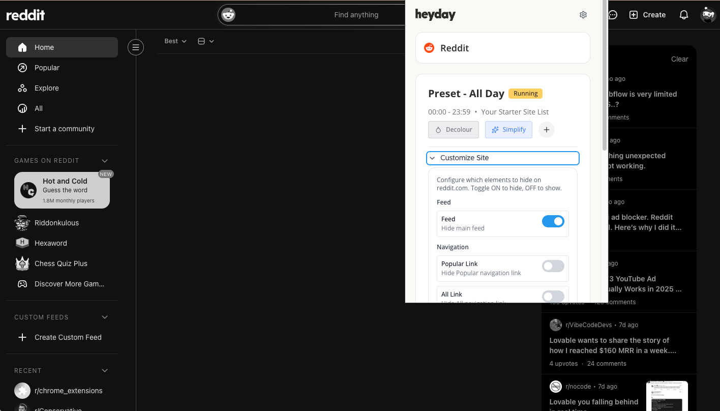 Heyday removes Reddit's addictive elements while preserving access to specific communities.